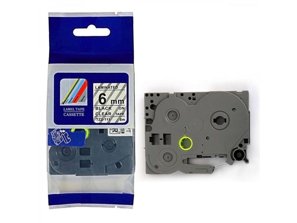 Kompatibilní páska Brother TZ-111 / TZe-111, 6mm x 8m, černý tisk / průhledný podklad