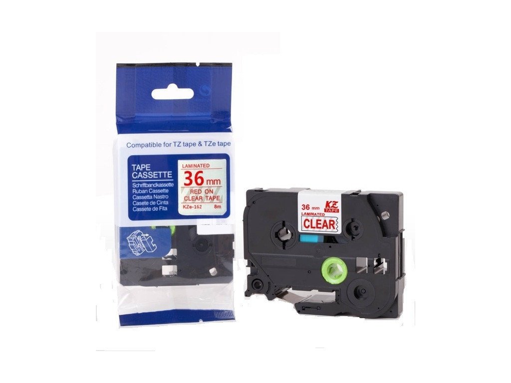 Kompatibilní páska Brother TZ-162 / TZe-162, 36mm x 8m, červený tisk / průhledný podklad
