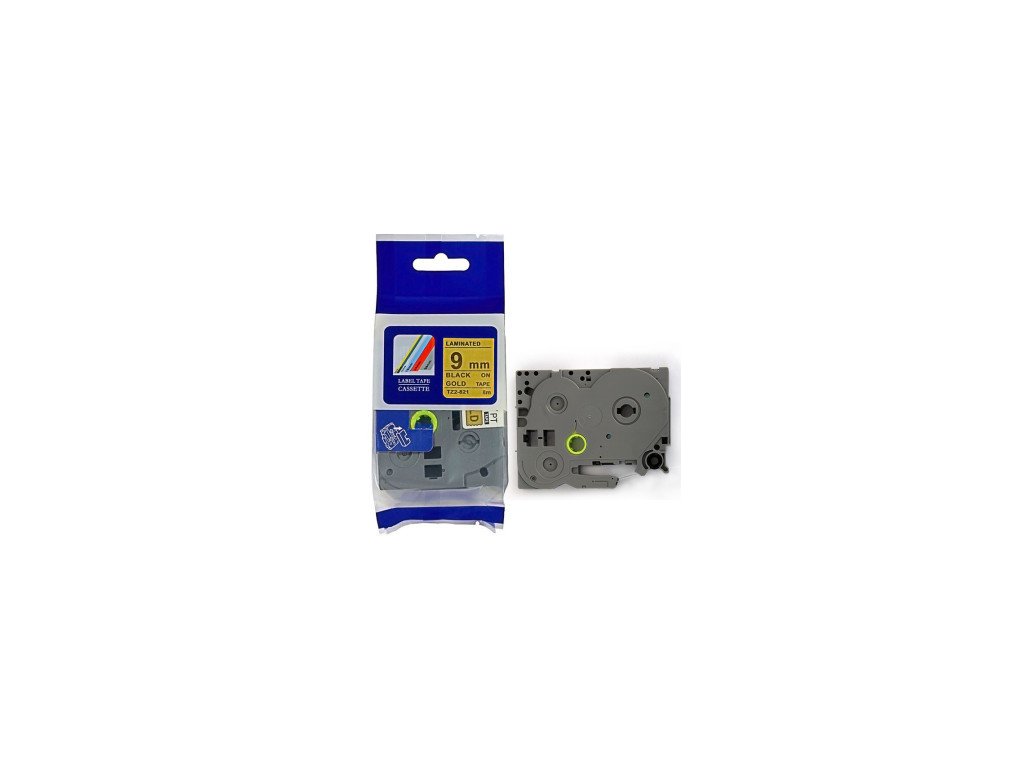 Kompatibilní páska Brother TZ-821 / TZe-821, 9mm x 8m, černý tisk / zlatý podklad